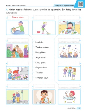 A. Verilen nezaket ifadelerini uygun görseller ile eşleştirelim. Bir ifadeyi birkaç kez