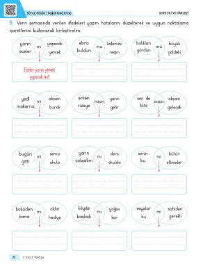 B. Venn şemasında verilen ifadeleri yazım hatalarını düzelterek ve uygun noktalama