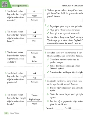hayvanlardan hangisi lığın benzerliğine yer verilmiştir? Yazalım.