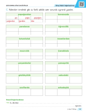 C. Kelimeleri örnekteki gibi üç farklı şekilde satır sonunda ayırarak yazalım.