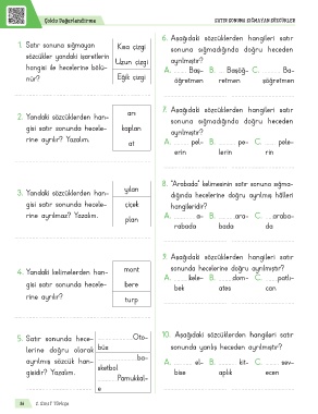 5. Satır sonunda hece- Oto- 10. Aşağıdaki sözcüklerden hangileri satır