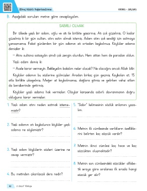 1. Yaşlı adam atını neden satmak isteme- 5. “Sabır” kelimesinin sözlük anlamını yaza-