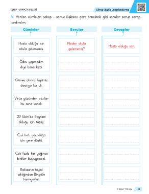 A. Verilen cümleleri sebep - sonuç ilişkisine göre örnekteki gibi sorular sorup cevap-