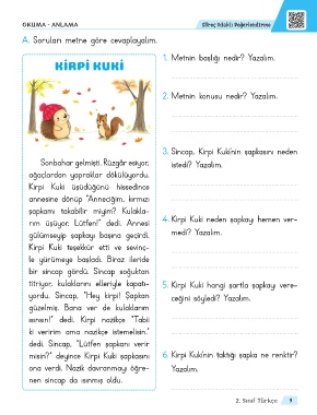 yordu. Sincap, “Hey kirpi! Şapkan ceğini söyledi? Yazalım.
