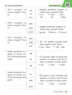 1. “Kuru” sözcüğünün zıt yaş 6. Aşağıdaki sözcüklerden hangisinin zıt