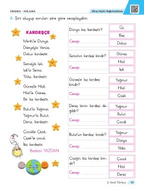 A. Şiiri okuyup soruları şiire göre cevaplayalım.