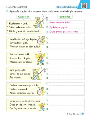 C. Aşağıdaki olayları oluş sırasına göre sıralayarak örnekteki gibi yazalım.