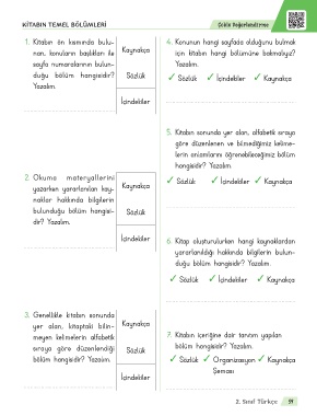 1. Kitabın ön kısmında bulu- 4. Konunun hangi sayfada olduğunu bulmak