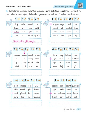 Her adımda ulaştığımız kelimeleri yazarak benzetme cümleleri oluşturalım.