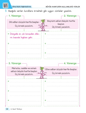 B. Aşağıda verilen kurallara örnekteki gibi uygun cümleler yazalım.