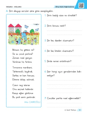 A. Şiiri okuyup soruları şiire göre cevaplayalım.