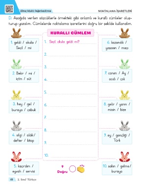 turup yazalım. Cümlelerde noktalama işaretlerini doğru bir şekilde kullanalım.