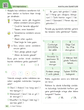 9. Aşağıda bazı noktalama işaretlerinin kul- 11. Bir yavru kedi gördüm ( ) sokak-