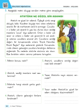 B. Aşağıdaki metni okuyup soruları metne göre cevaplayalım.