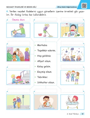 A. Verilen nezaket ifadelerini uygun görsellerin üzerine örnekteki gibi yaza-