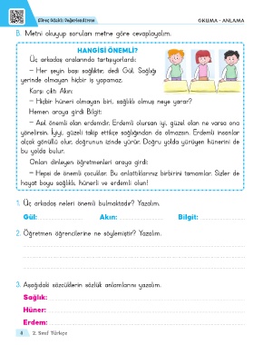 B. Metni okuyup soruları metne göre cevaplayalım.