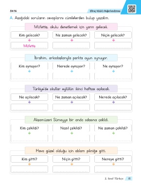 A. Aşağıdaki soruların cevaplarını cümlelerden bulup yazalım.