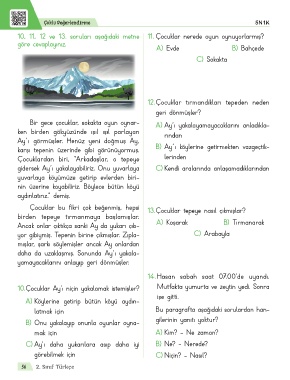 10, 11, 12 ve 13. soruları aşağıdaki metne 11. Çocuklar nerede oyun oynuyorlarmış?