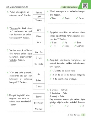 tık.” cümlesinde altı çizili Sert 7. Aşağıdaki sözcükler zıt anlamlı olacak