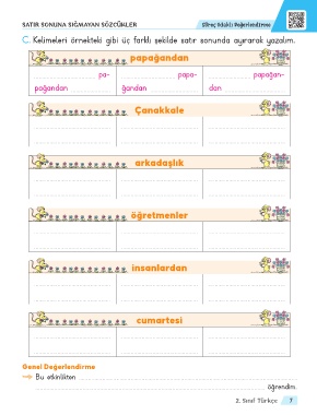 C. Kelimeleri örnekteki gibi üç farklı şekilde satır sonunda ayırarak yazalım.