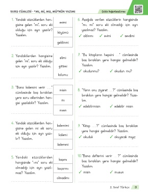 gisine gelen mi eki soru 9. “Kitap ?” cümlesinde boş bırakılan