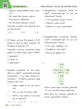 12. (1) Doğum günüme Aslı gelecek mi? (2) misin?” cümlesindeki gibi “mi” soru eki