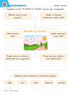 B. Aşağıdaki soruları “RÜZGÂR İLE GÜNEŞ” metnine göre cevaplayalım.