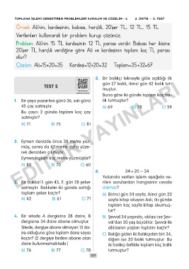 TOPLAMA İŞLEMİ GEREKTİREN PROBLEMLERİ KURALIM VE ÇÖZELİM - 2 2. ÜNİTE – 5. TEST