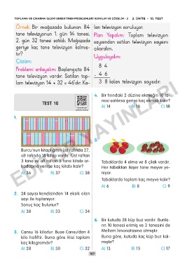 TOPLAMA VE ÇIKARMA İŞLEMİ GEREKTİREN PROBLEMLERİ KURALIM VE ÇÖZELİM - 2 2. ÜNİTE – 10. TEST