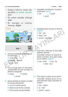 ZIT ANLAMLI KELIMELER 2. TEMA – 1. TEST