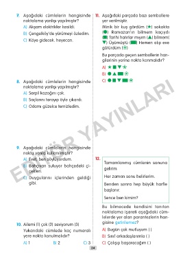 7. Aşağıdaki cümlelerin hangisinde 11. Aşağıdaki parçada bazı sembollere