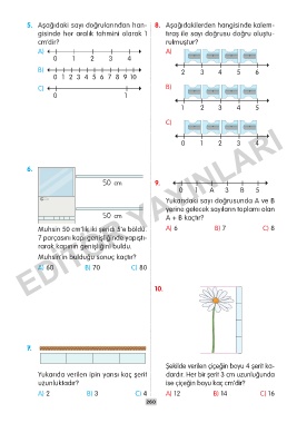 5. Aşağıdaki sayı doğrularından han- 8. Aşağıdakilerden hangisinde kalem-