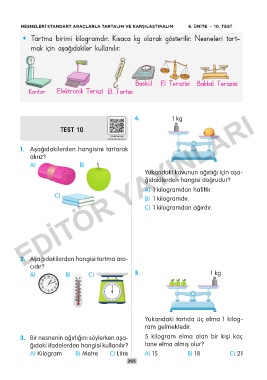 NESNELERİ STANDART ARAÇLARLA TARTALIM VE KARŞILAŞTIRALIM 6. ÜNİTE – 10. TEST