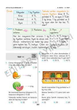 KÜTLE ÖLÇÜ BİRİMLERİ - 1 6. ÜNİTE – 11. TEST