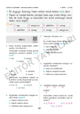 CÜMLE OLUŞTURMA - ANLAMLI KURALLI CÜMLE 2. TEMA – 4. TEST