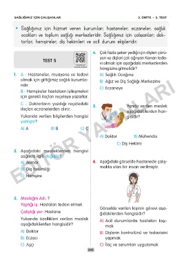 SAĞLIĞIMIZ İÇİN ÇALIŞANLAR 3. ÜNİTE – 5. TEST