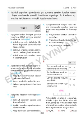YOLCULUK YAPIYORUZ 4. ÜNİTE – 2. TEST