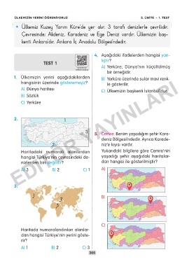 ÜLKEMİZİN YERİNİ ÖĞRENİYORUZ 5. ÜNİTE – 1. TEST