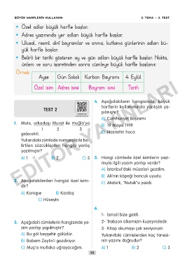 BÜYÜK HARFLERIN KULLANIMI 3. TEMA – 2. TEST