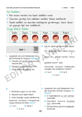 KIŞI ÖZELLIKLERI VE DUYGU BILDIREN IFADELER 4. TEMA – 1. TEST