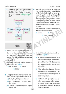 HIKÂYE UNSURLARI 4. TEMA – 4. TEST