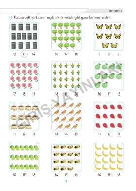 MATEMATİK H. Kutulardaki varlıkların sayılarını örnekteki gibi yuvarlak içine alalım. 12 13 14 16 17 18 6 7 8 20 19 11 10 18 18 17 GİRİŞ YAYINLARI 12 19 11 12 13 13 14 15 11 12 13 16 17 18 14 15 16 16 17 18 8