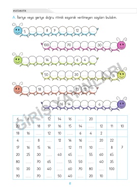 A. İleriye veya geriye doğru ritmik sayarak verilmeyen sayıları bulalım.