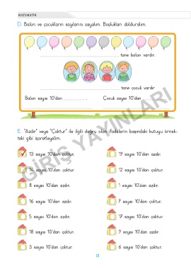 13 sayısı 10’dan çoktur. 19 sayısı 10’dan azdır.