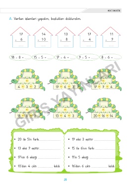 • 20 ile 5’in farkı • 19 eksi 3 eşittir