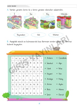 B. Aşağıdaki sözcük avı bulmacasında bazı illerimizin isimleri gizlidir. Bu illerimizi