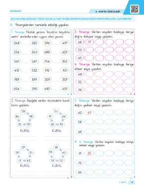 1. Yönerge: Noktalı yerlere “küçüktür, büyüktür, 3. Yönerge: Verilen sayıdan başlayıp ileriye