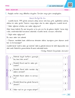 C. Aşağıda verilen anıyı dikkatlice okuyalım. Soruları anıya göre cevaplayalım.