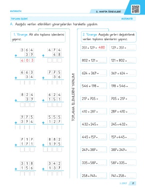 3 9 1 5 1 TOPLAMA İŞLEMLERİNİ YAPALIM! 217 + 705 = 705 + 217 =