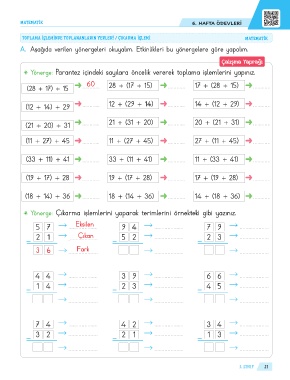 Yönerge: Parantez içindeki sayılara öncelik vererek toplama işlemlerini yapınız.